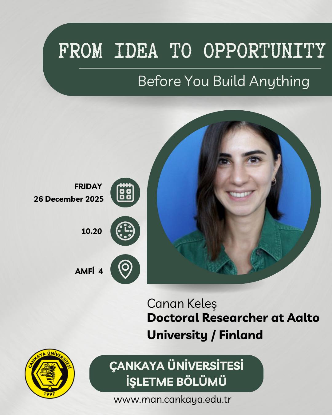 ‘From Idea to Opportunity: Before You Build Anything’ Seminer from Canan Keles at Aalto University / Finland